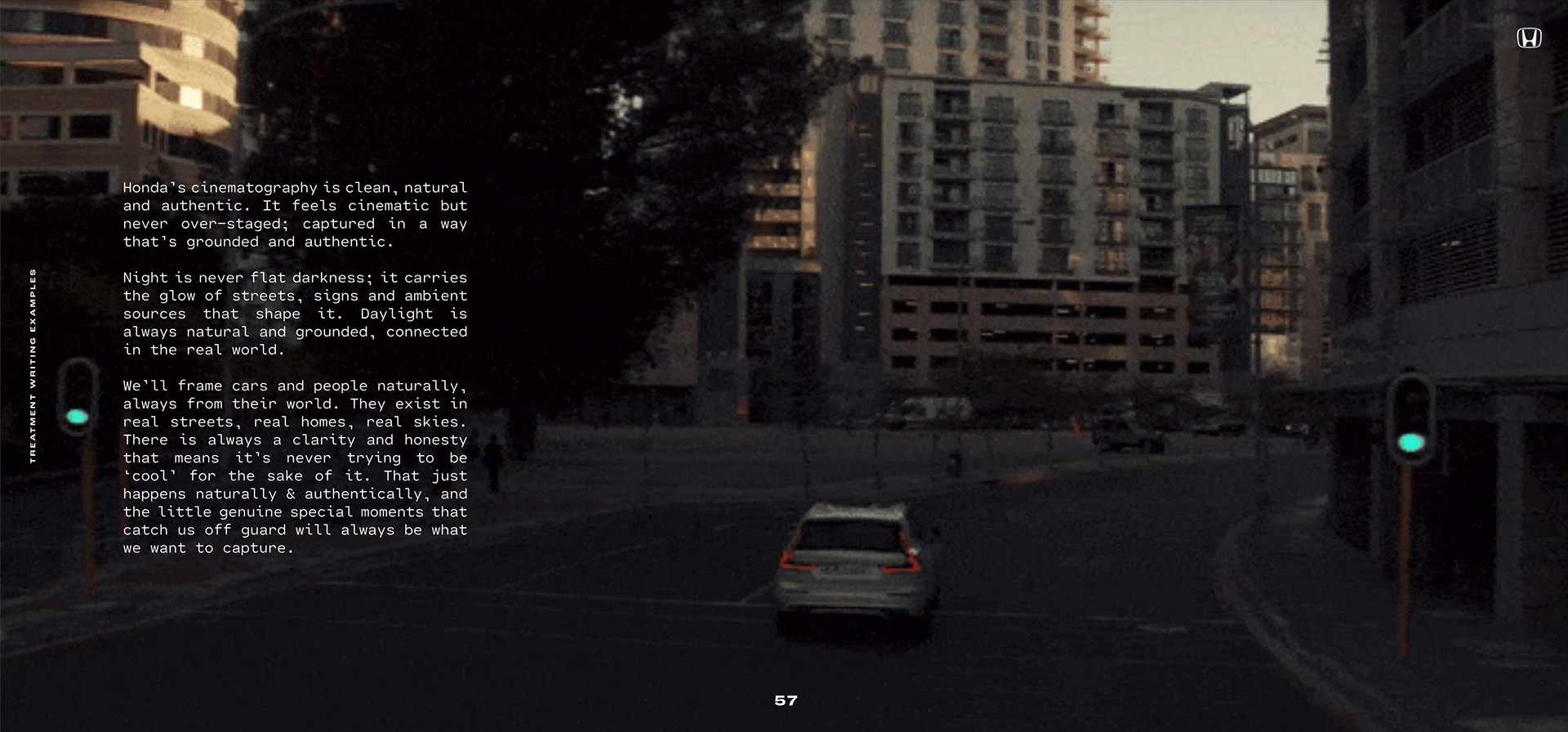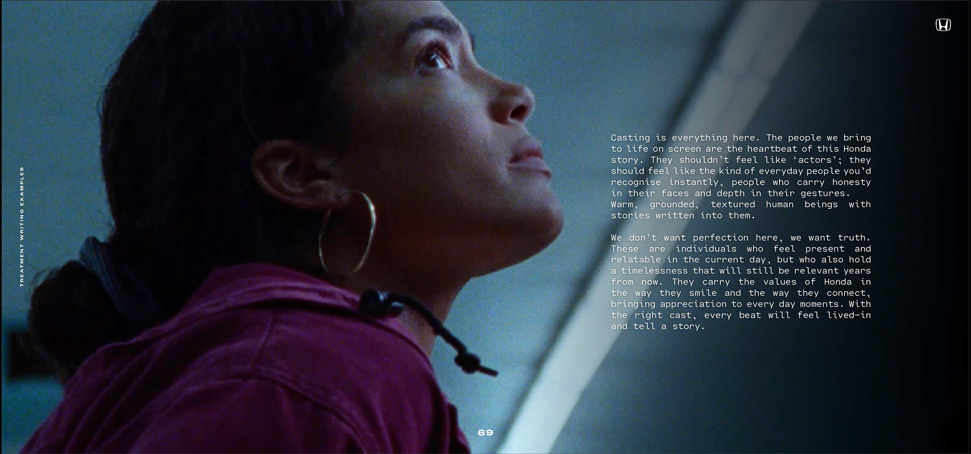 We work with directors and producers across the globe to carefully understand the tone of voice and creative approach. Whether it’s shaping treatments from scratch or refining scripts, we ensure the text fully realises the director’s vision while meeting the needs of the brief.