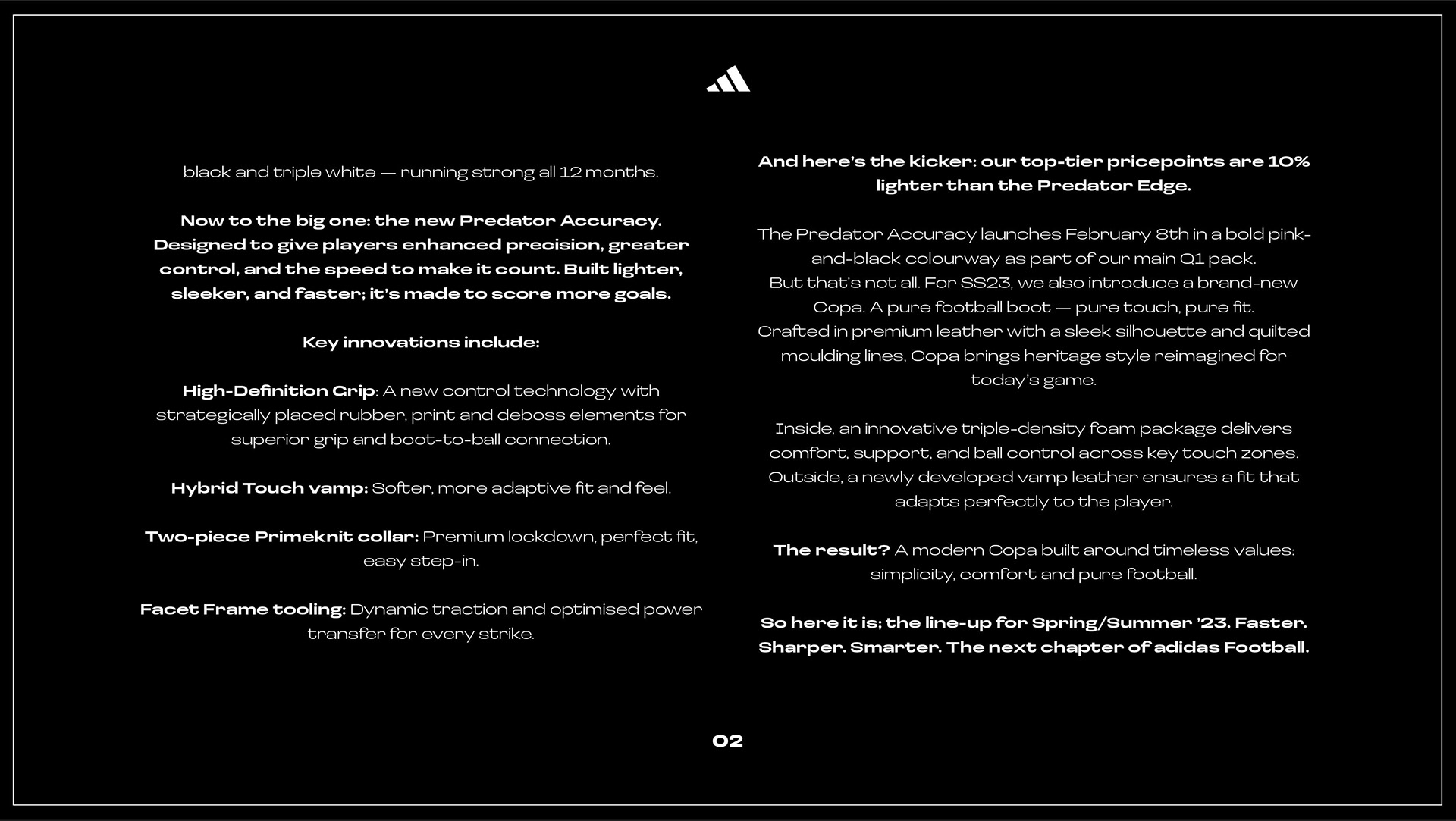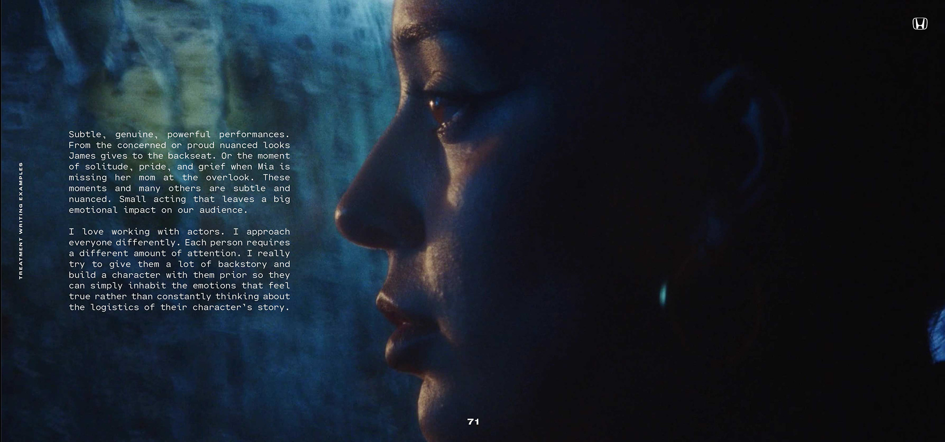 We offer treatment writing, overseen by our in-house writer Jade Matthew, to truly bring your creative vision to life. We’ve written copy on campaigns for some of the most prominent international brands, including Adidas, Bose, FIFA, Red Bull and Skoda.